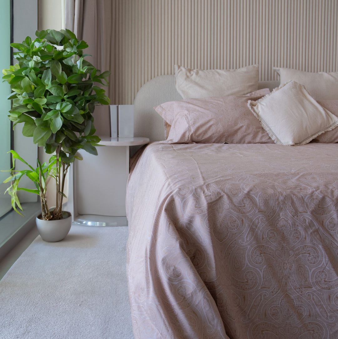 انغمس في التاريخ الغني لأنماط البيزلي، التي أعيد تصورها الآن لغرفة نوم حديثة مع إليسيان بيزلي. مصنوع من أجود أنواع القطن بنسبة 100%، وهي ألياف طبيعية مشهورة بنعومتها وراحتها وتهويتها ومتانتها الرائعة، مما يضمن متعة دائمة لسنوات قادمة. تم تصميم Elysian Paisley في الأصل لفنادق 5 نجوم، وهو الآن يزين ملاذك الشخصي، حيث يجلب الرفاهية الشبيهة بالفندق إلى غرفة نومك الخاصة. بفضل خصائصه المقاومة للتجاعيد والتجاعيد، سيبدو سريرك دائمًا خاليًا من العيوب كما تشعر. تم تصميم Elysian Paisley لتقليل مخاطر الحساسية، وهو يلبي راحتك ورفاهيتك. استمتع بالراحة التي توفرها عمليات الغسيل الأقل تكرارًا، حيث تظل أغطية السرير لدينا نظيفة لمدة أطول وتتحمل أكثر من 200 دورة غسيل، مما يضمن طول العمر والصيانة دون عناء.