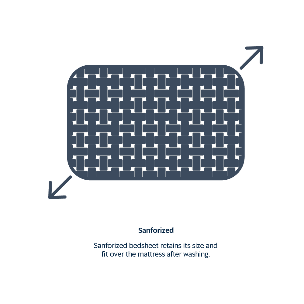 Our 100% cotton bedsheets undergo the sanforization process to minimize fabric shrinkage, ensuring that their size and fit remain consistent after washing. This process also maintains the consistent feel, texture, and appearance of the sheets. For a silk-like luster and added softness, we mercerize our sheets. This treatment enhances the sheets' ability to absorb dyes deeply and uniformly, resulting in richer, more vibrant colors that are less likely to fade.